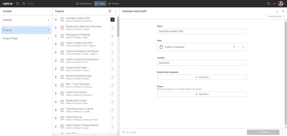 Sanity was used to create the website's backoffice, making it trivial for the client to keep the content, contacts and portfolio up to date, and add new projects to their portfolio, all without developer intervention.