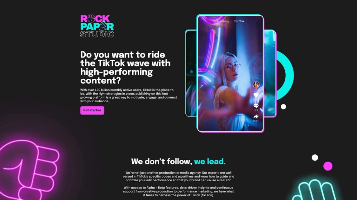 Landing page for a media agency specialized in Tik Tok ads. Included brand design.