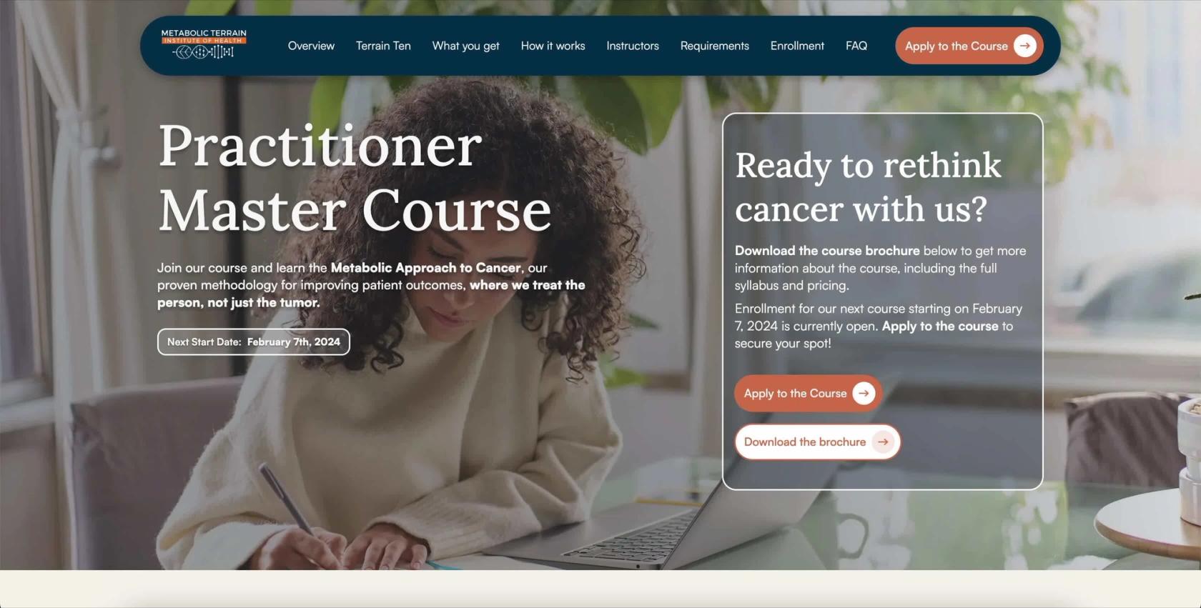 Landing page for a practitioner master course on the Metabolic Approach to Cancer.