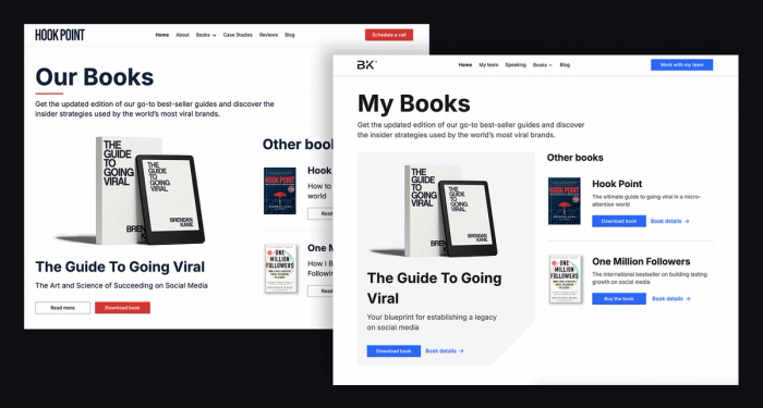 The Hook Point and Brendan Kane websites share a lot of content, such as blog articles, books that were released by Brendan but that are also announced on the Hook Point website, the same flow to contact Brendan's team, among other things.