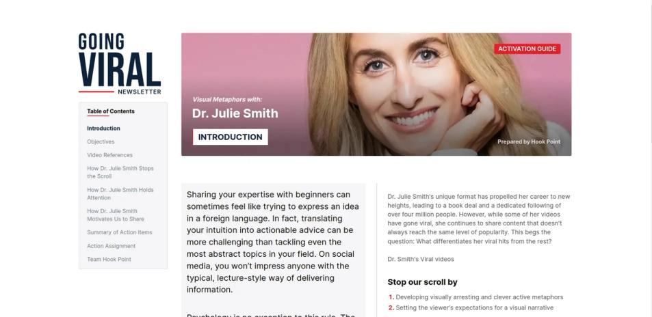 Hook Point came to us with the idea of creating a paid newsletter where each week subscribers would receive new guides about the science behind going viral in their inbox.