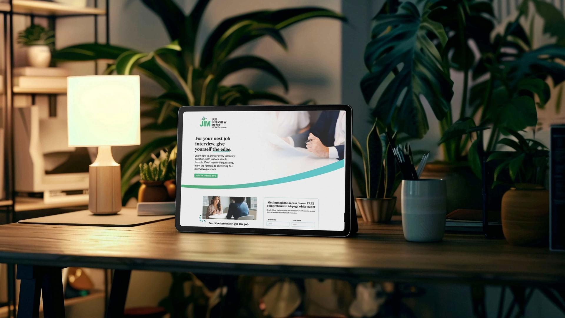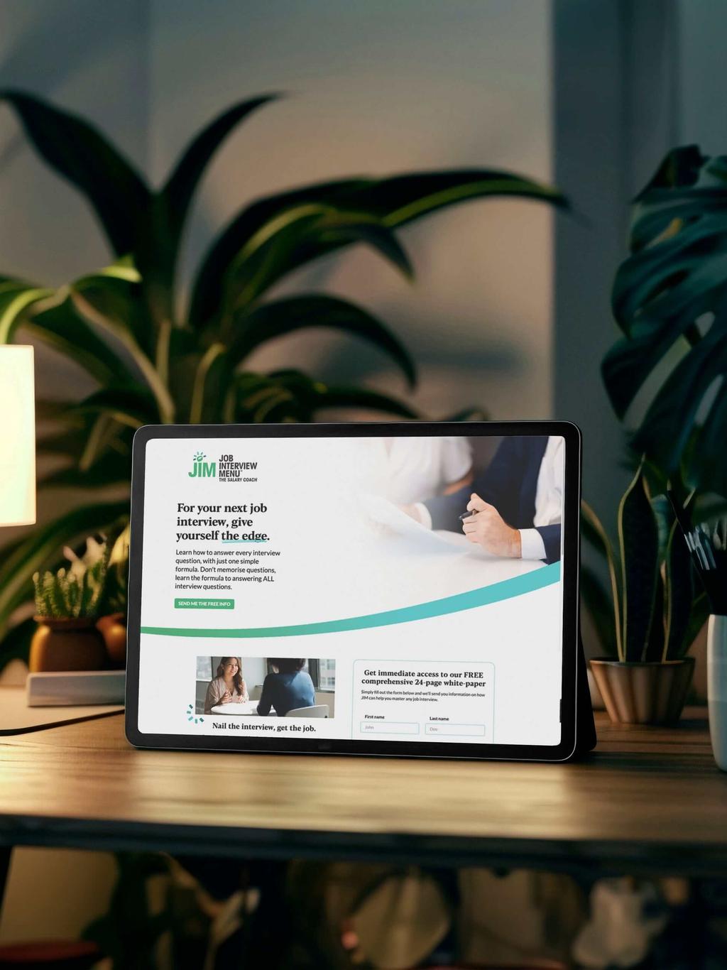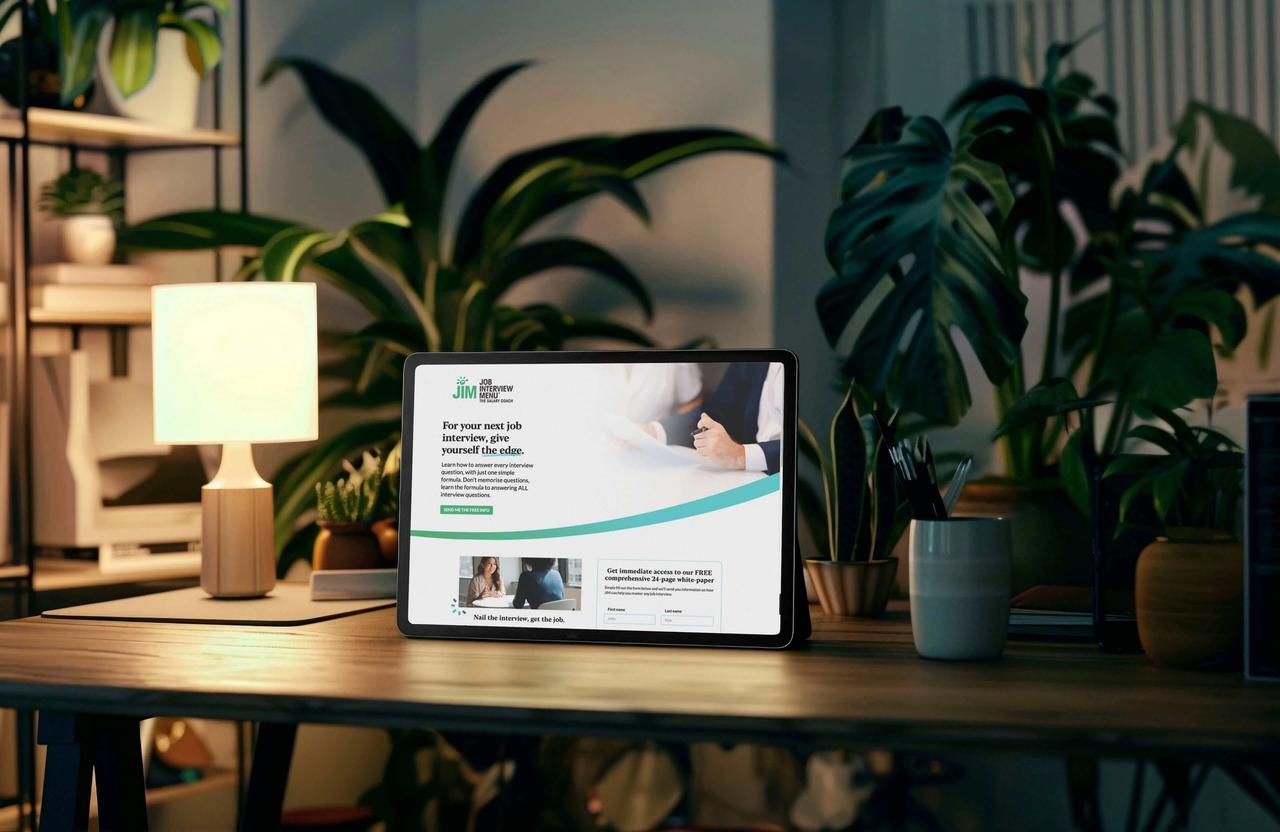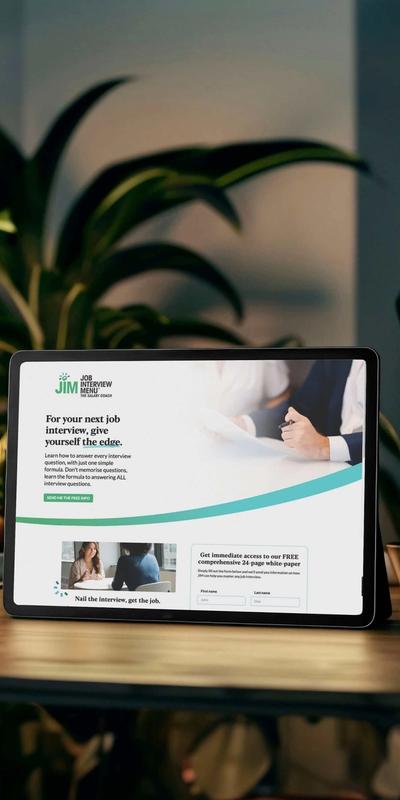 Landing page aimed at generating leads with an interest in learning how to plan for job interviews.