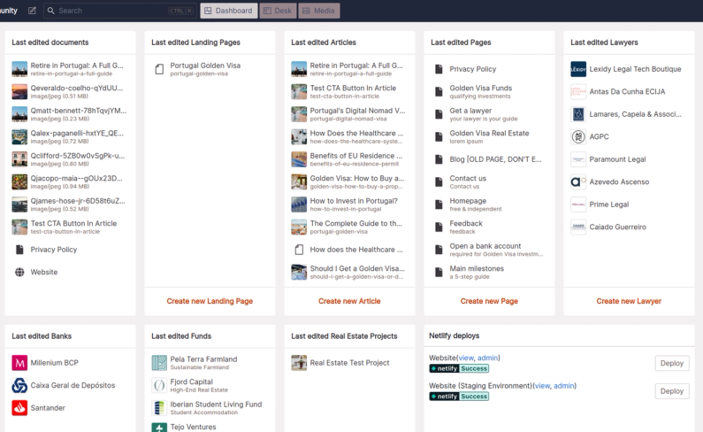 Our own backoffice, where we manage all our website, landing pages and proposals. Updating content for our clients, projects, reviews, tech stack, and so much more is just a few clicks away.